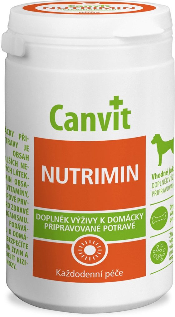 Canvit Nutrimin obsahuje veškeré vitamíny, minerály a stopové prvky nezbytné pro zdravé fungování organismu. Pravidleným podáváním přípravku k domácímu jídlu zabezpečíte bezpečný přísun živin a pomůžete předejít riziku hypovitaminózy.