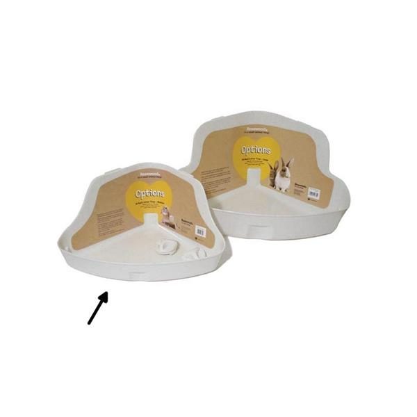 Rohová plastová toaleta pre králiky a fretky. Väčšina králikov a fretiek je schopných naučiť sa WC používať. Rozmery: 31 x 22 x 15 cm (šírka x hĺbka x výška operadla).