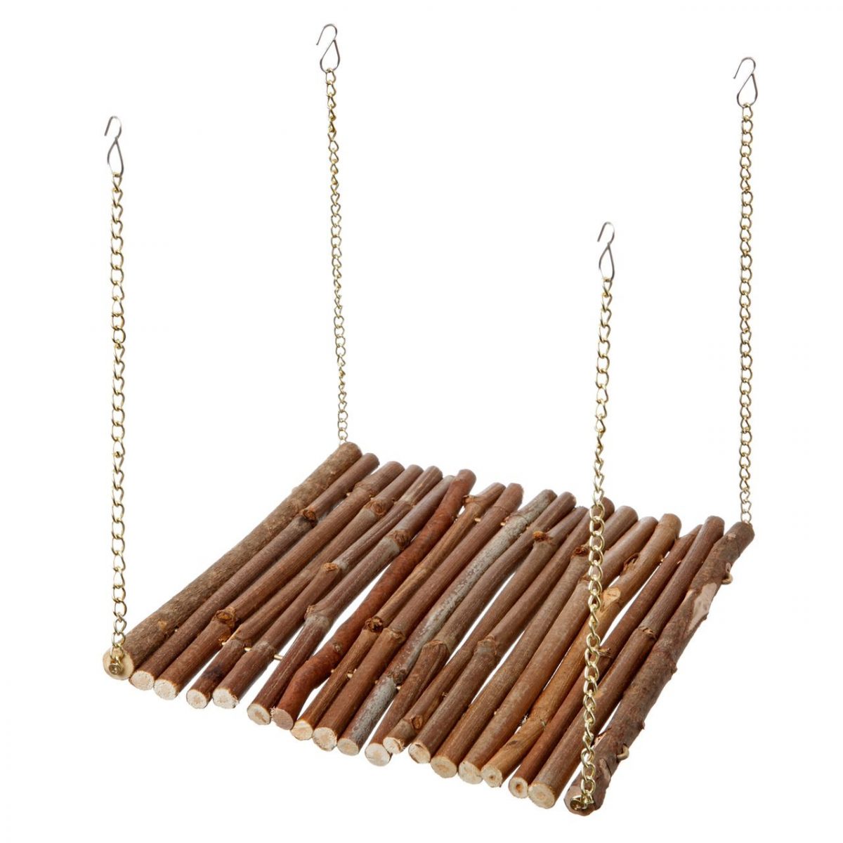 Drevená hojdačka z vetiev, opatrená retiazkami na zavesenie. Tato houpačka rozšiřuje možnost aktivního pohybu a zároveň možnost odpočinku. Vhodná pro osmáky a morčata.