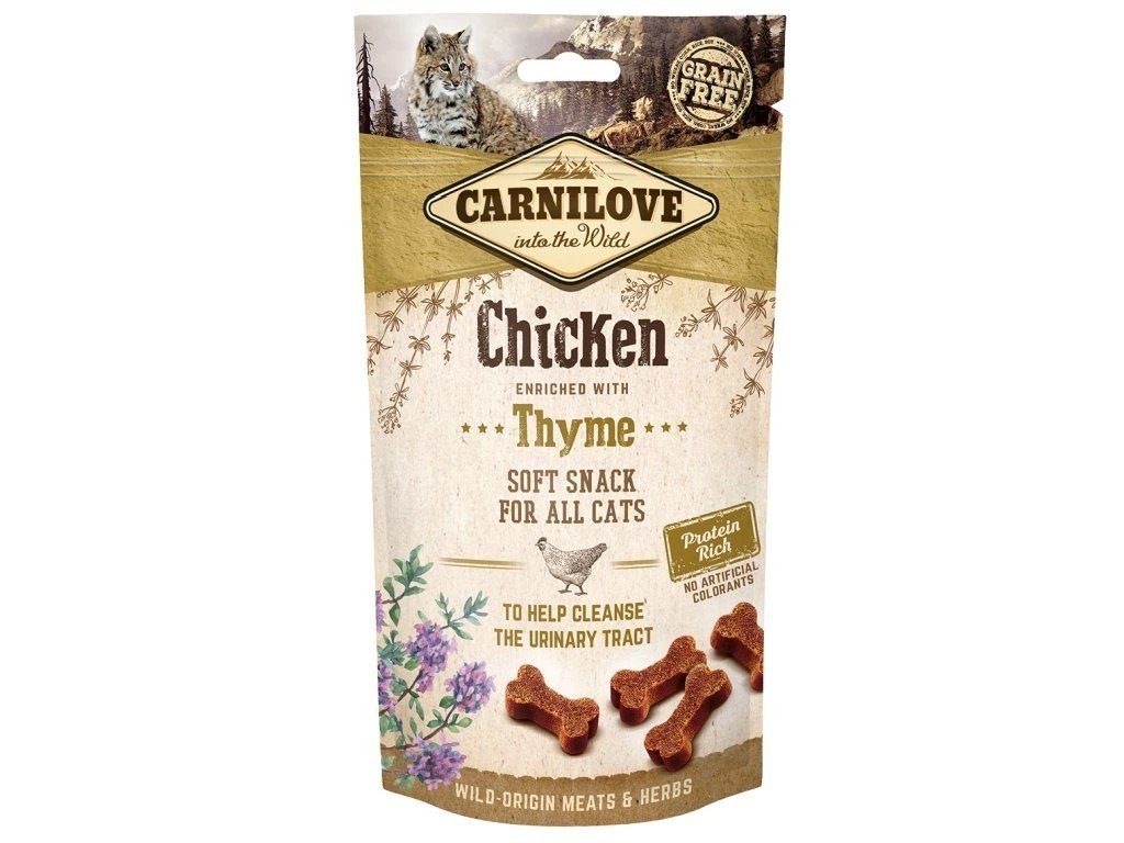 Doplňkové krmivo pro kočky. Lahodný poloměkký pamlsek vhodný pro všechny kočky. S tymiánem, který pomáhá udržet zdravé močové cesty. S čerstvým masem, bez obilovin a přidaného cukru. Krmný návod: použijte poloměkké pamlsky jako odměnu k vytvoření silného vztahu se svou kočkou.
