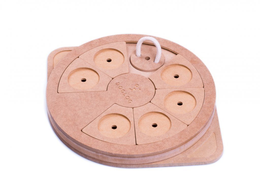 Hlavolam PIZZA light je v principu stejný jako hlavolam PIZZA, jen v ekonomičtějším provedení. I když hlavolam nemá dubové posouvací kameny, nemusíte se bát, že by si to váš čtyřnohý parťák nemohl užít. Stejně jako u ostatních hlavolamů, hra začíná vložením odměny.