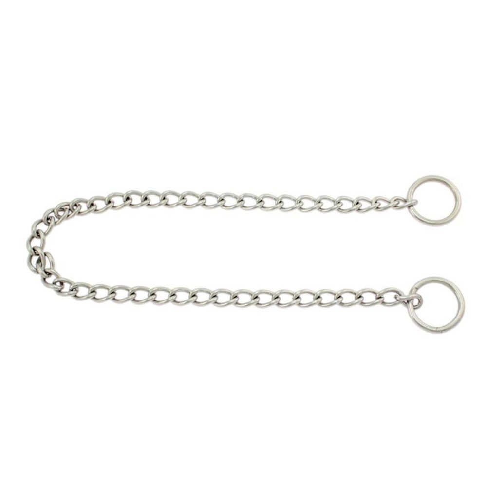 Obojok sťahovací retiazkový, jednoradový. Vodítko sa prichytáva za kovové očko a prevlieka sa.