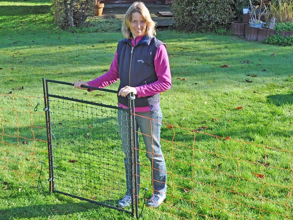 Brána k sieťam pre elektrické ohradníky, výška 105 cm. Umožňuje rýchly a ľahký priechod do ohrady.