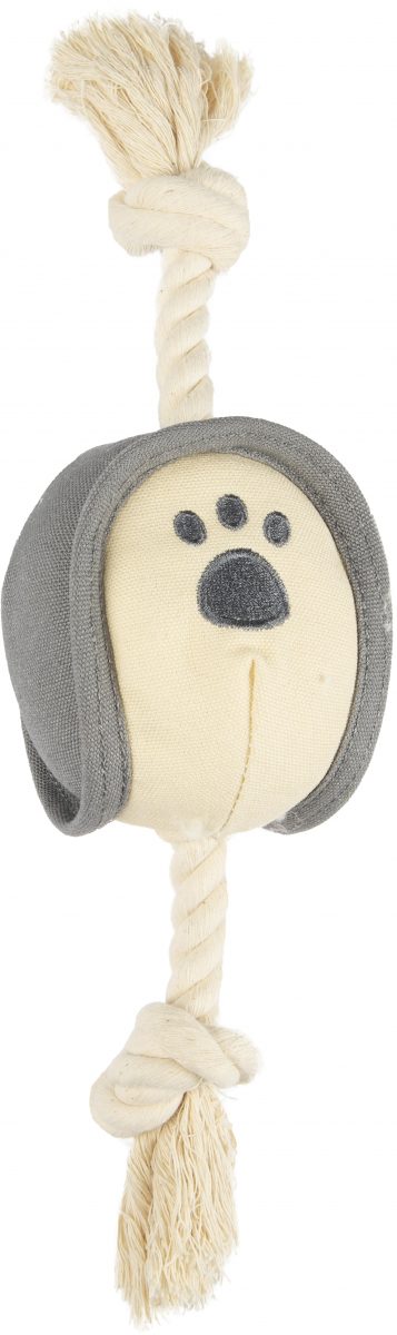 Hračka z ekologickej látky GOTS pre psov v tvare lopty s uzlami na oboch koncoch.