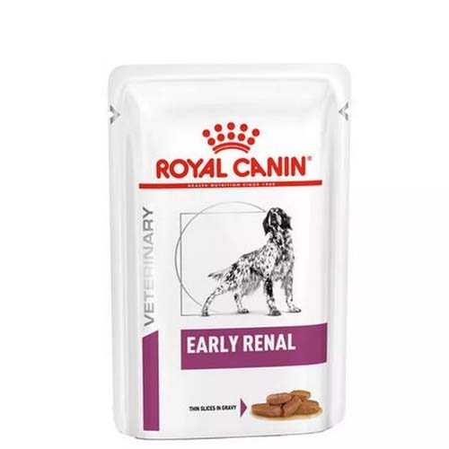 ROYAL CANIN® EARLY RENAL tenké kousky ve šťávě je kompletní dietní krmivo pro psy s recepturou na podporu funkce ledvin v případě chronické ledvinové nedostatečnosti, a to díky nízkému obsahu fosforu a vysoce kvalitních proteinů. EARLY RENAL vlhké krmivo s recepturou pro počáteční stádia chronické renální nedostatečnosti.