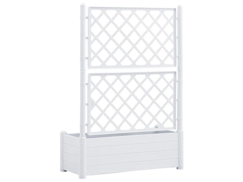 Truhlík s mřížkou, drenážním dnem, pro venkovní použití, z polypropylenu, barva bílá, o objemu 80l, rozměry 100x43x142cm.