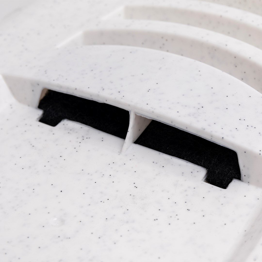 Toto řešení je ideální, pokud nemáme prostor pro izolaci kočičího záchodku. Zakrývá obsah a díky zabudovanému uhlíkovému filtru ještě lépe zadržuje pachy. Dalšími výhodami jsou chytrý držák na lopatku (je součástí dodávky) a střízlivé barevné provedení (na výběr jsou 2 barvy).