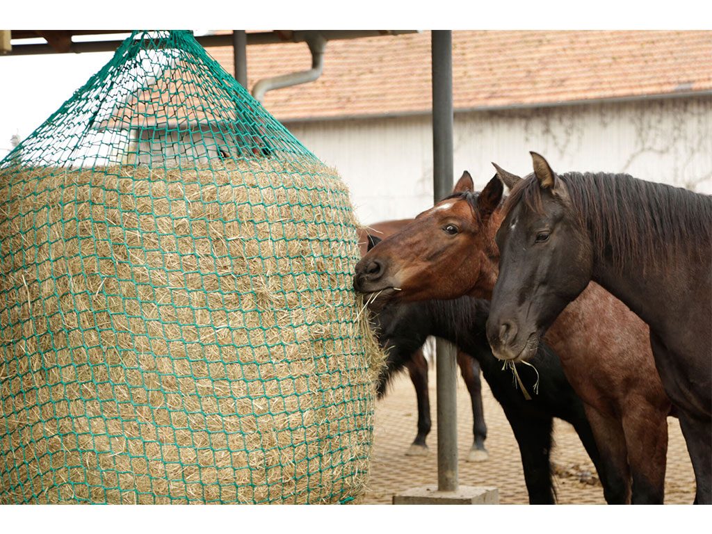Kŕmna sieť na seno pre kone, závesná, oko 4,5 cm, lano 6mm, odolné, mäkký materiál a univerzálne použitie, rozmer 125x160 cm. Pomôžte koňom udržať seno na správnom mieste a zároveň im poskytnite potrebnú reguláciu príjmu potravy pomocou tejto sieťky. Vyrobená z odolného a napriek tomu mäkkého materiálu, ktorý je bezpečný pre kone, táto sieťka zabráni koňom vo vyhadzovaní sena po stajni či ohrade. Sieťka má ideálne rozmery pre efektívne dávkovanie sena pre kone a dokonca je vhodná aj pre ovce. Vďaka malým okám je perfektný na balenie senáže a skladovanie sena. Môžete ju zavesiť alebo voľne umiestniť do ohradníka podľa potreby.