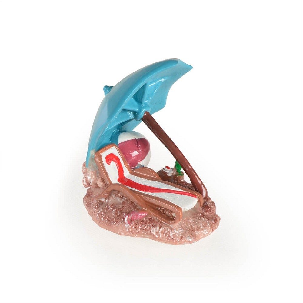 Akváriové dekorácie RES-2018 Plážové lehátko s dáždnikom prináša do sladkovodného akvária zábavný a hravý prvok.