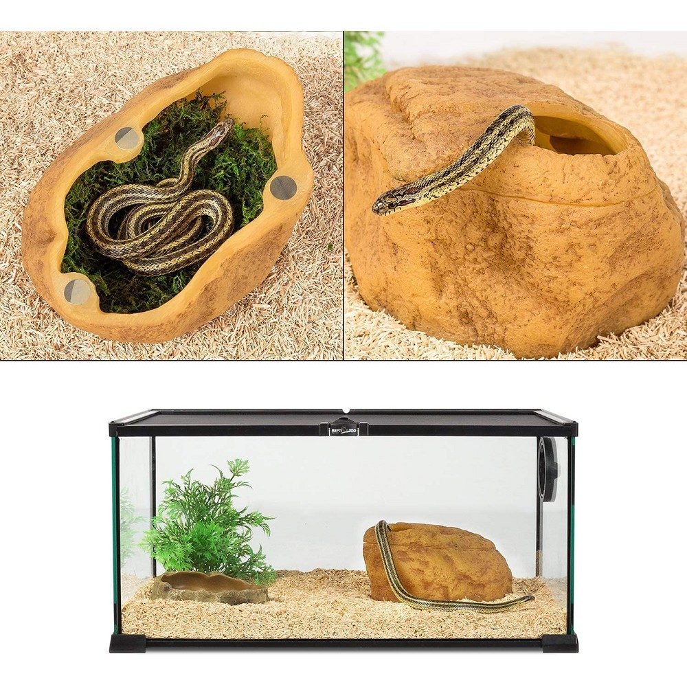 Víceúčelová magnetická jeskyně ReptiZoo je praktickým a vizuálně atraktivním doplňkem do každého terária. Díky odolné konstrukci z pryskyřice poskytuje plazům bezpečný úkryt, ideální prostředí pro svlékání i kladení vajec. Přirozený vzhled jeskyně zapadá do různých typů terarijních aranžmá a přispívá k celkovému pohodlí chovaných zvířat.