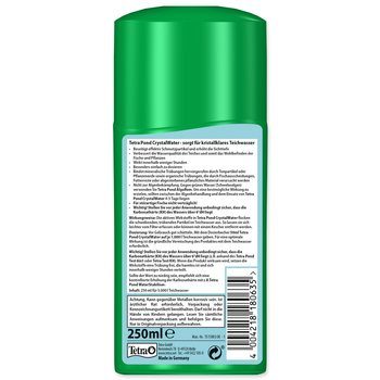 Dávkování: na každých 1000 l vody přidejte 50 ml Tetra Pond CrystalWater a důkladně promíchejte.