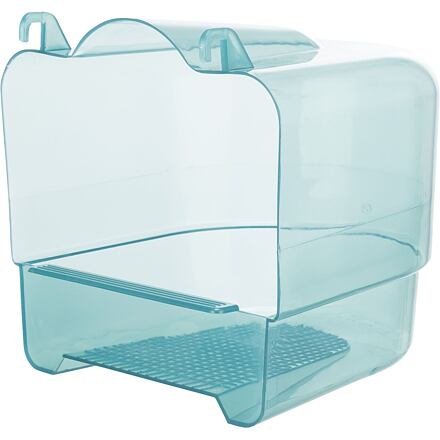 Plastová hranatá kúpeľňa pre andulky, kanáriky a pinky. Koupelna se uchycuje ke ke kleci do prostoru dvířek zapomocí háčků.