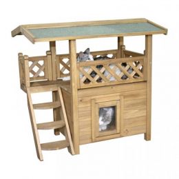 Mačacie pelech - búda Lodge s terasou je štýlová búda pre mačku, ktorá sa bude pekne vynímať na záhrade alebo balkóne.